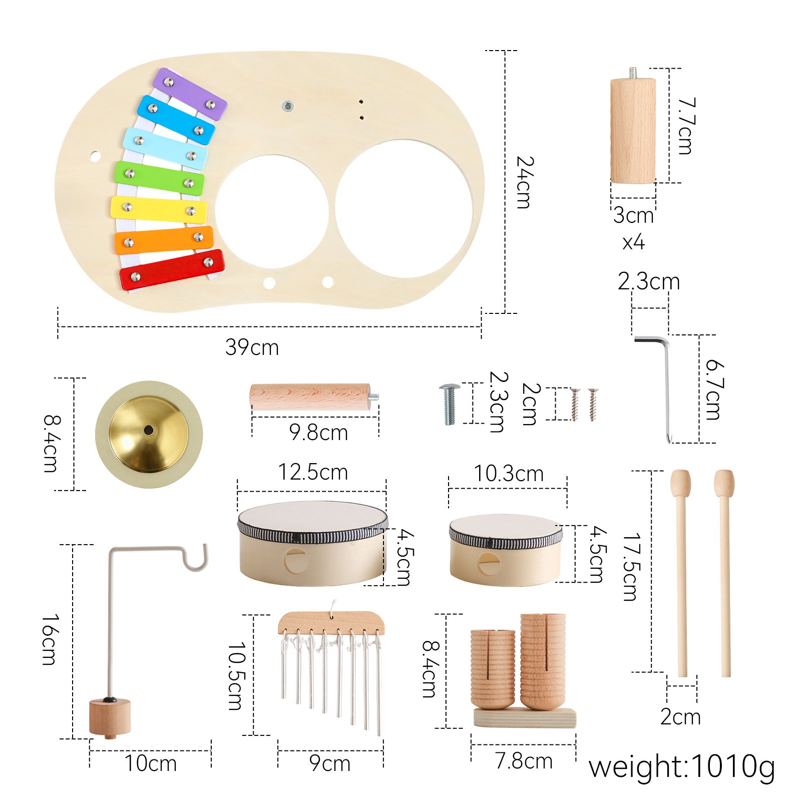 Holz-Montessori-Schlagzeugset ab 3 Jahre – Xylophon, Trommel & Musikinstrumente für Kleinkinder, Lernspielzeug zur musikalischen Früherziehung