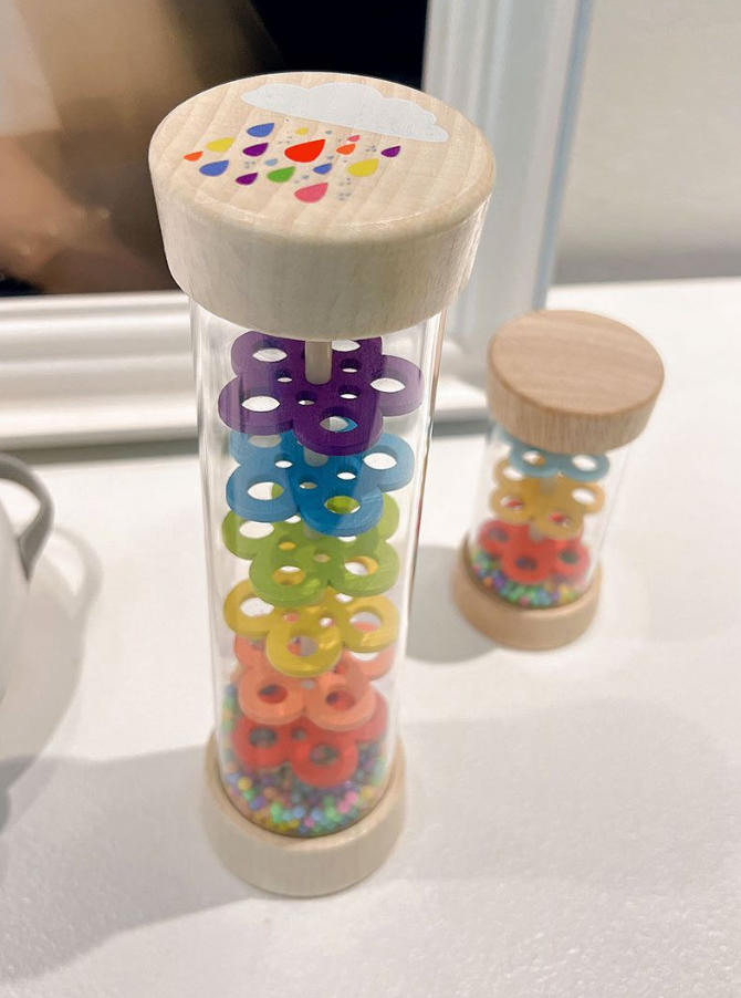 Förderung der sensorischen Entwicklung: Durch das sanfte Rieseln der Perlen wird nicht nur das Gehör angeregt, sondern auch das Verständnis für Ursache und Wirkung spielerisch geschult. Ein ideales Begleitinstrument für erste musikalische Erfahrungen.
